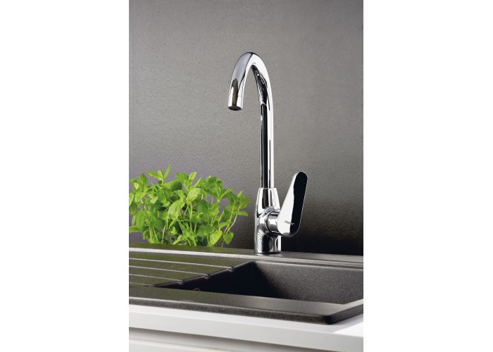 Смеситель для кухни FERRO Algeo (BAG4) устанавливается на кухонную мойку посредством одного монтажного отверстия. Прочный корпус из латуни устойчив к механическим повреждениям. Смеситель оснащен керамическим регулятором и поворотным изливом. Регулятор струи M24x1. Гибкая подводка G 3/8-M10x1. Высота излива: 23см.