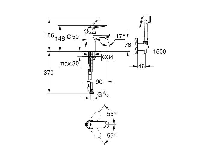 Смеситель для умывальника GROHE Eurosmart Cosmopolitan (23125000) – это элегантность и простота в обращении. Хромированное покрытие GROHE StarLight делает изделие легким в уходе. В качестве ухода смеситель достаточно протирать сухой салфеткой: его чрезвычайно гладкое покрытие устойчиво к царапанию и надолго сохраняет сияющий блеск. Водосберегающий механизм GROHE EcoJoy уменьшает расход ресурсов. Механизм GROHE EcoJoy сокращает расход воды почти на 50% без ущерба для комфорта. При каждом пользовании смесителем Вы будете наслаждаться обильным потоком воды, экономя при этом свои средства. Дополнительный ограничитель температуры с душевым набором, состоящим из душ со встроенным переключателем, настенный держатель душа, душевой шланг.